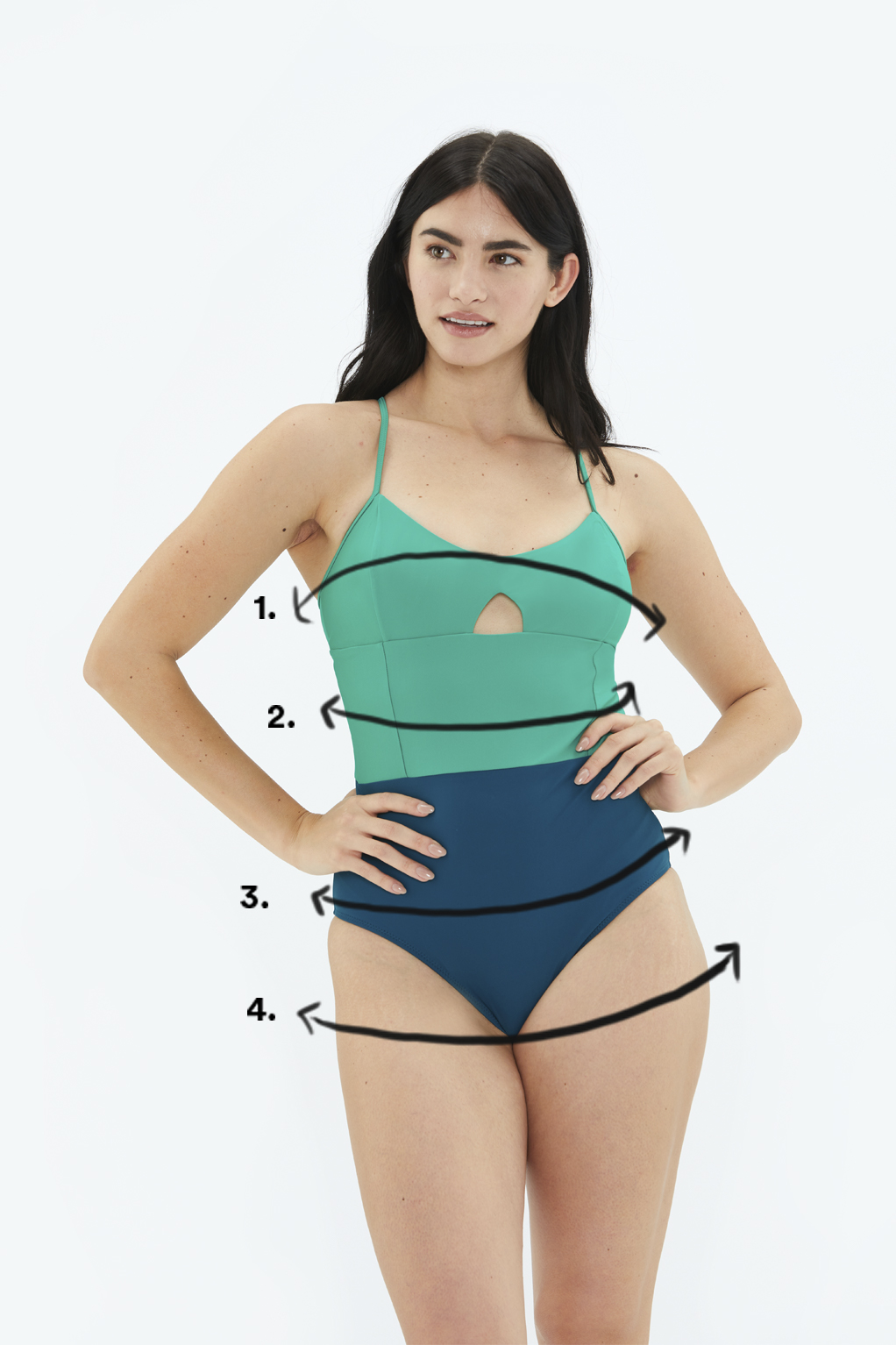 Using soft measuring tape, measure completely around the fullest part of the bust. Take a deep breath in and out to make sure the tape isn’t too tight or too loose.